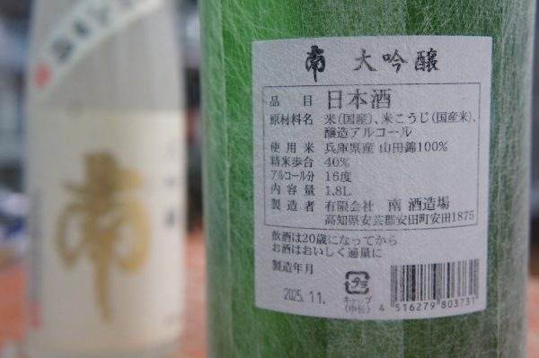 かねてより「南が金のラベル」とお問い合わせの多かった大吟醸酒が