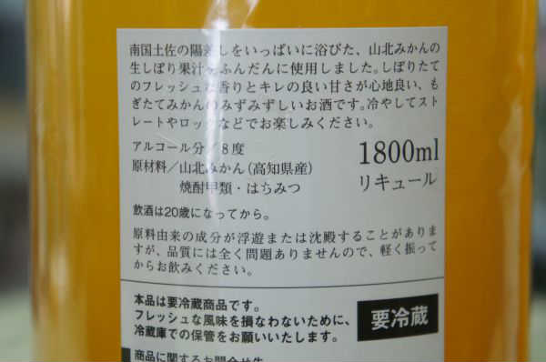原材料 :山北みかん(高知県産)、焼酎甲類、はちみつ